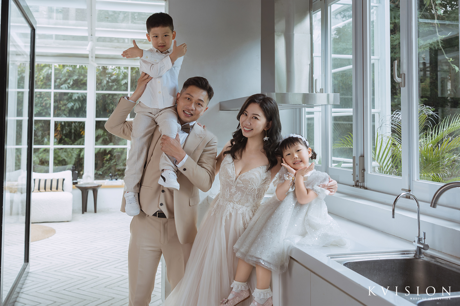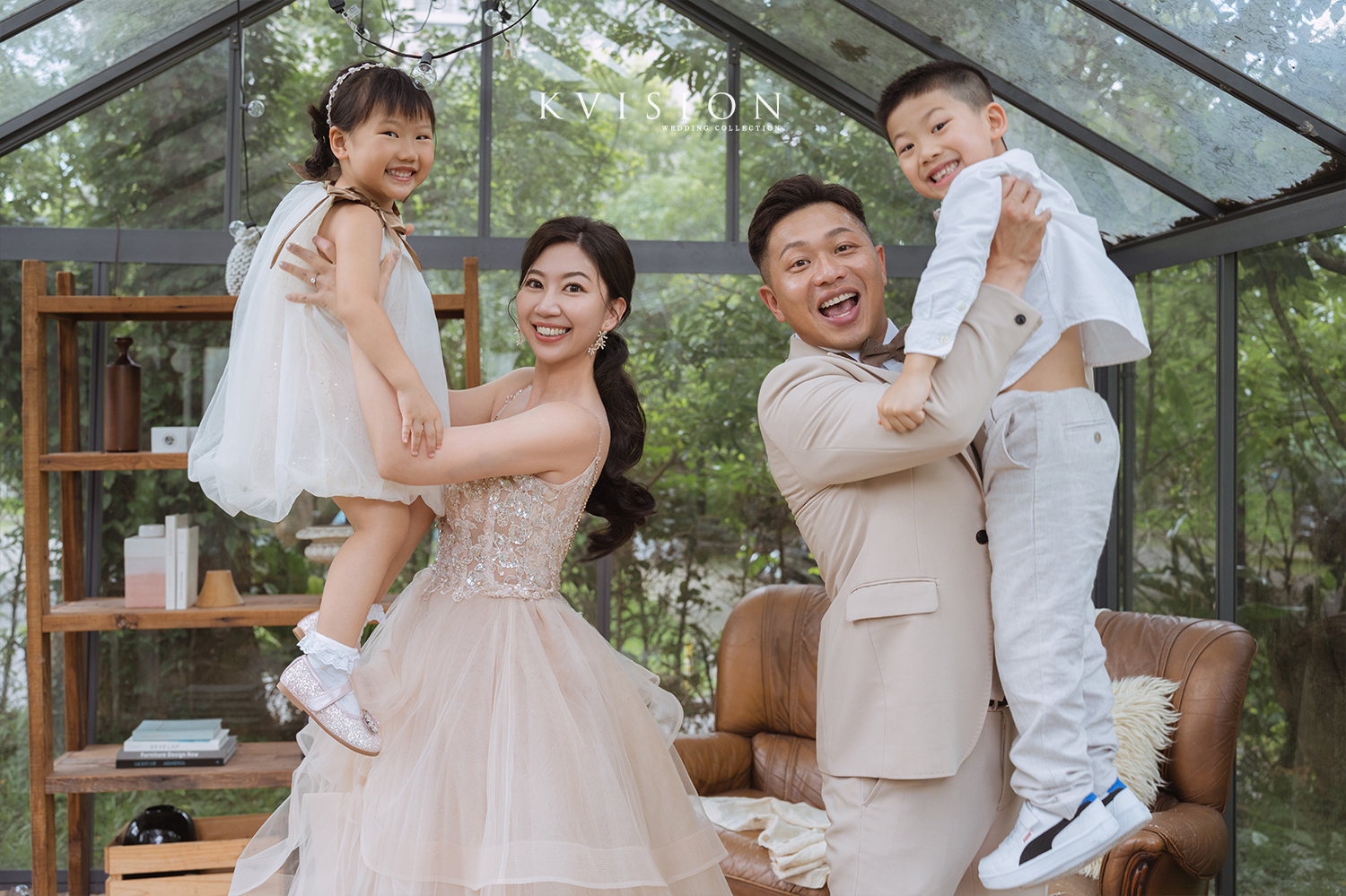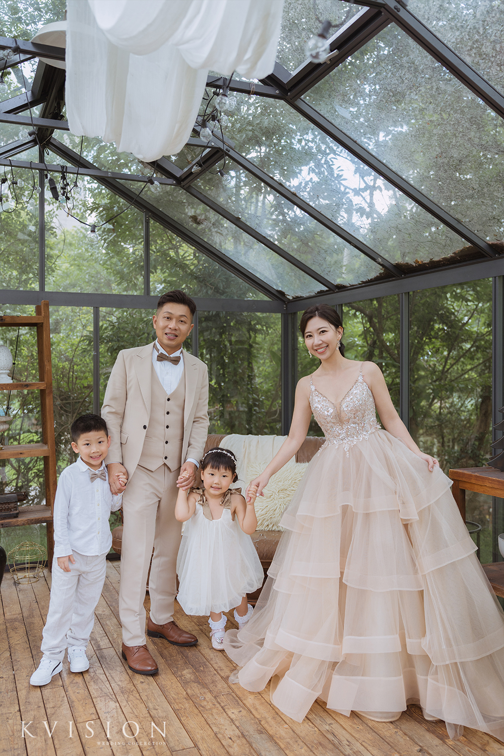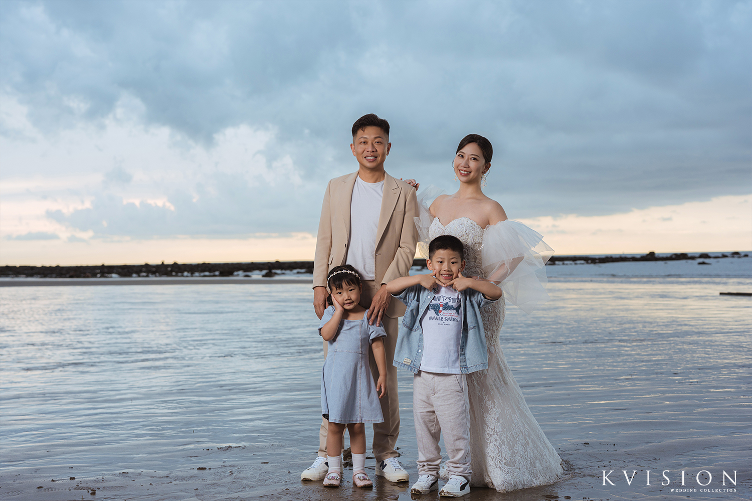 孩子們的笑容與活潑互動,讓這組婚紗攝影充滿生命力與親切感。這不只是兩人的愛情見證,更是家庭幸福的延伸。每一張照片都自然流露真情,彷彿時間靜止,留下永恆珍貴的回憶。