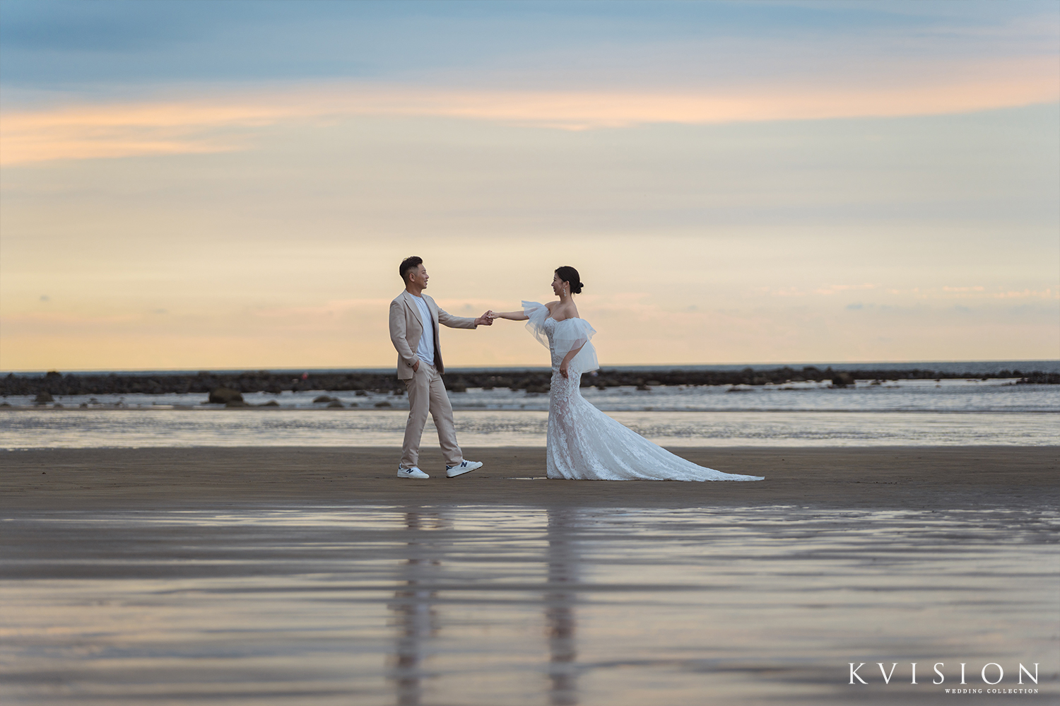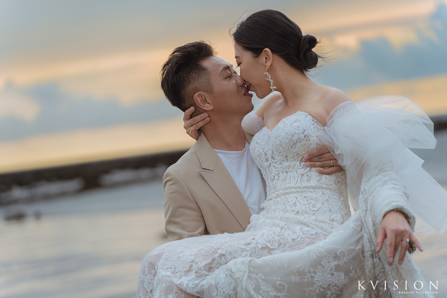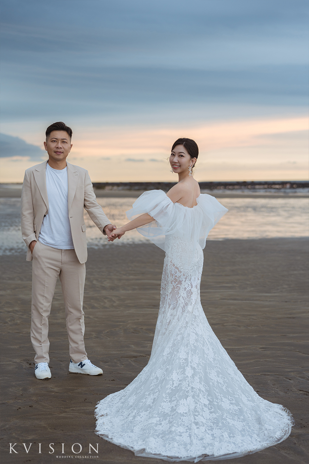 這組婚紗攝影,不只是兩人的浪漫故事,更是溫暖家庭的幸福篇章。以夕陽的柔光作為背景,捕捉自然愜意的每一刻,展現最真摯的情感連結。