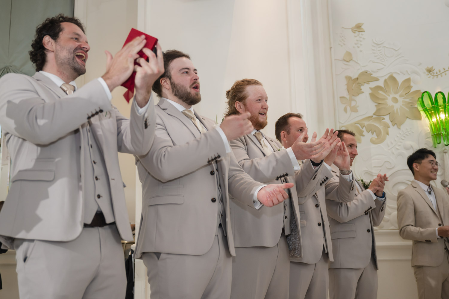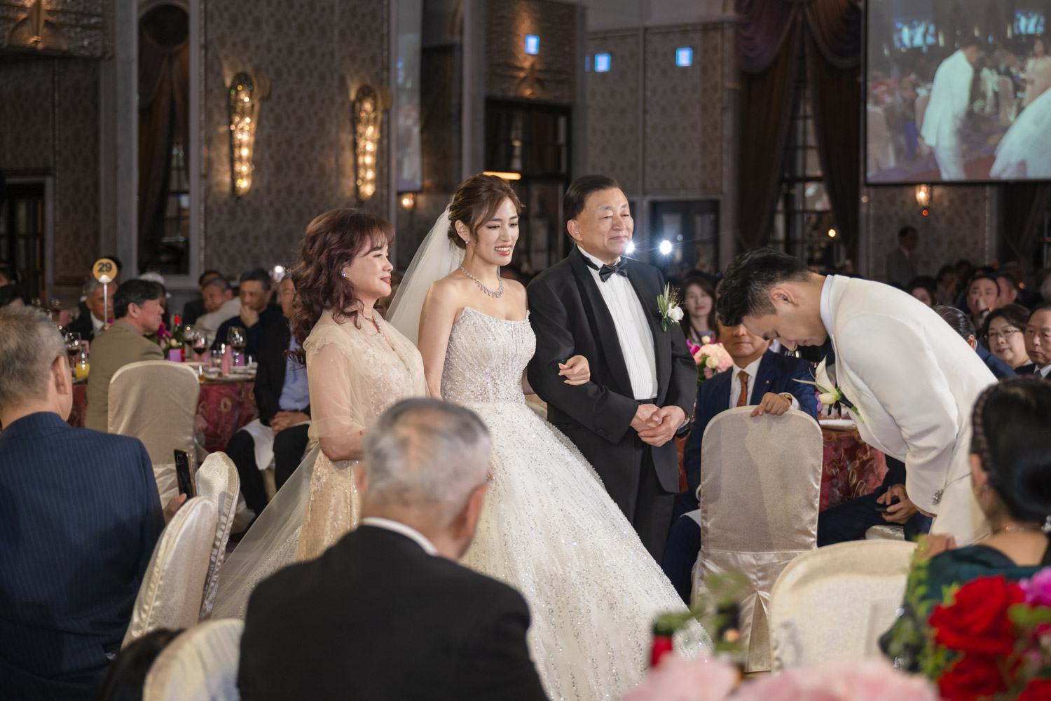 在台北文華東方的一日婚禮裡,Brian & Joyce 選擇以 First Look 開場,延伸到文華閣證婚與晚宴。Kvision 以電影感光影與精品婚禮攝影的美學,專注刻畫家人情感、宴會佈置與微小細節,完成一部關於承諾與優雅的紀實。