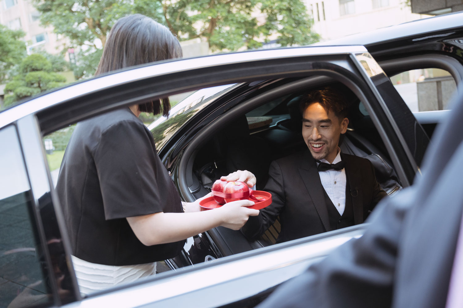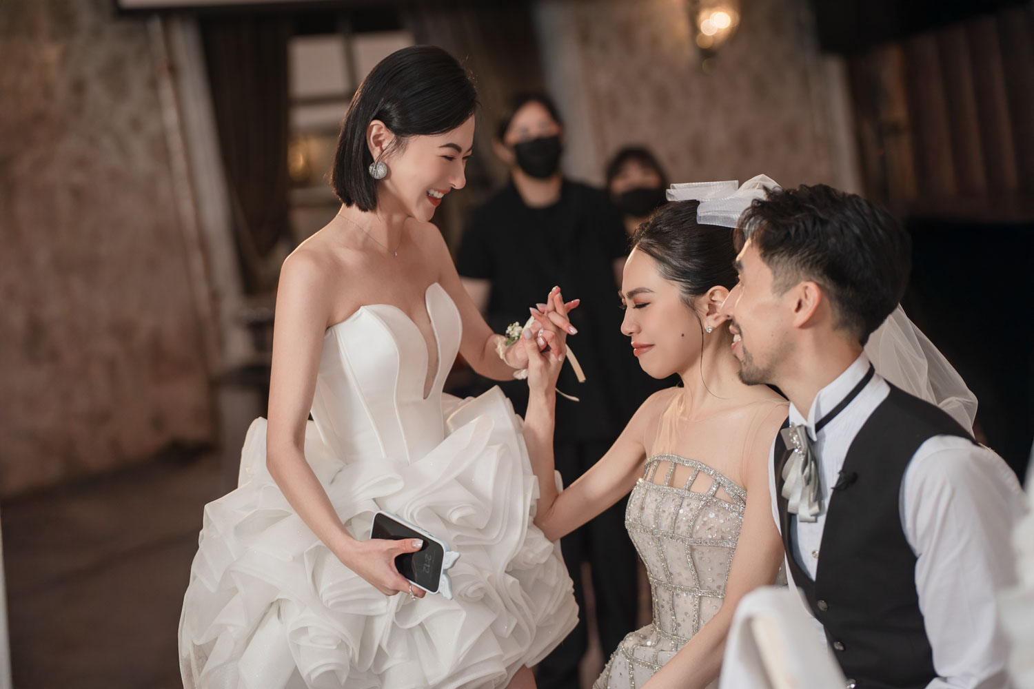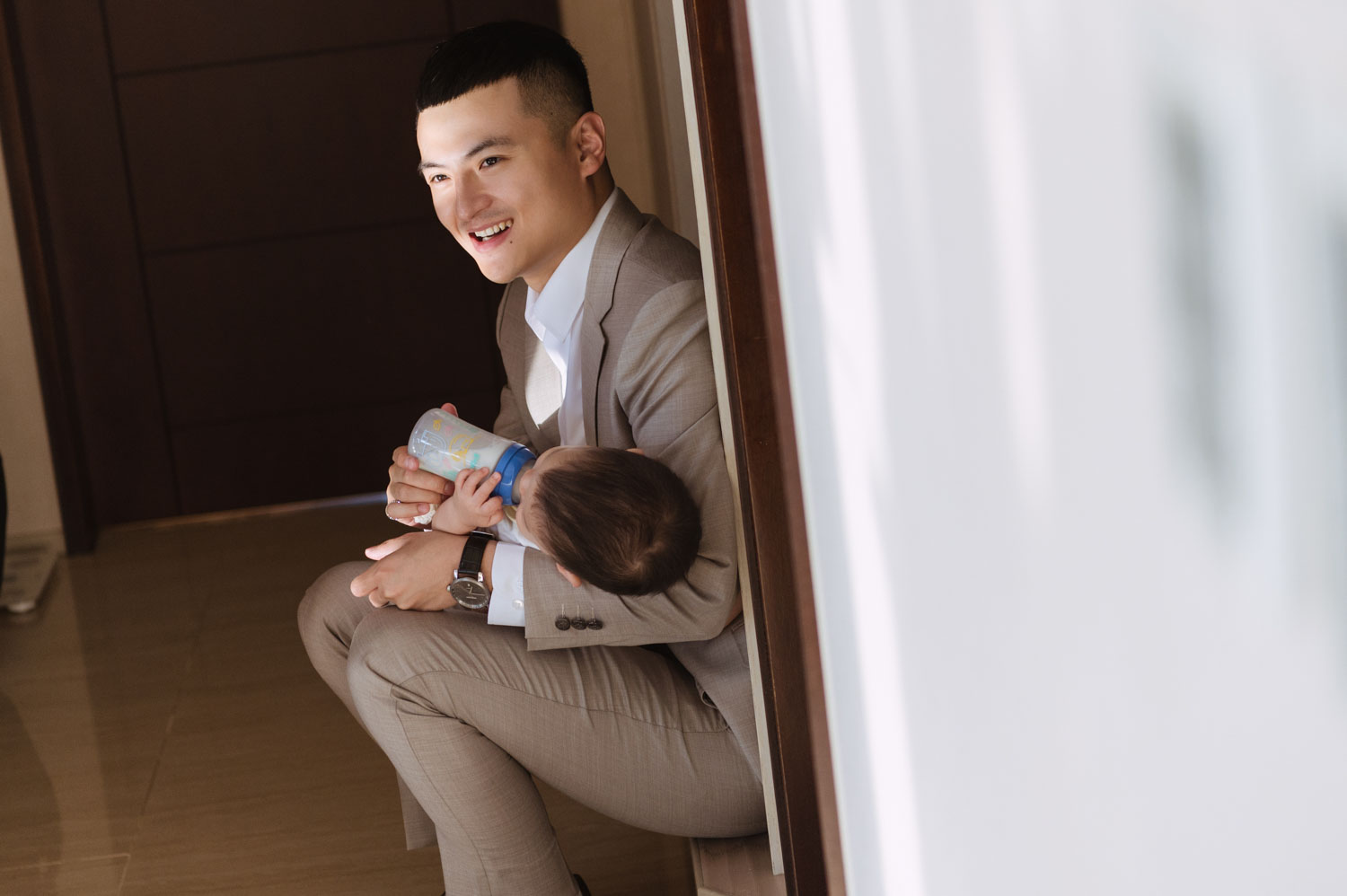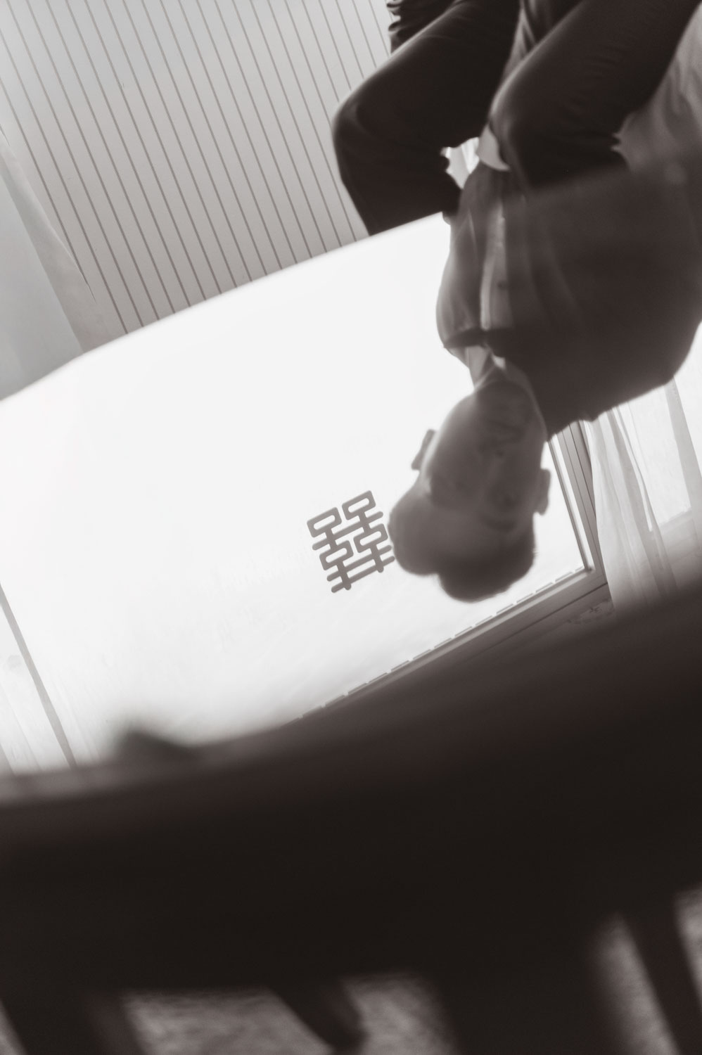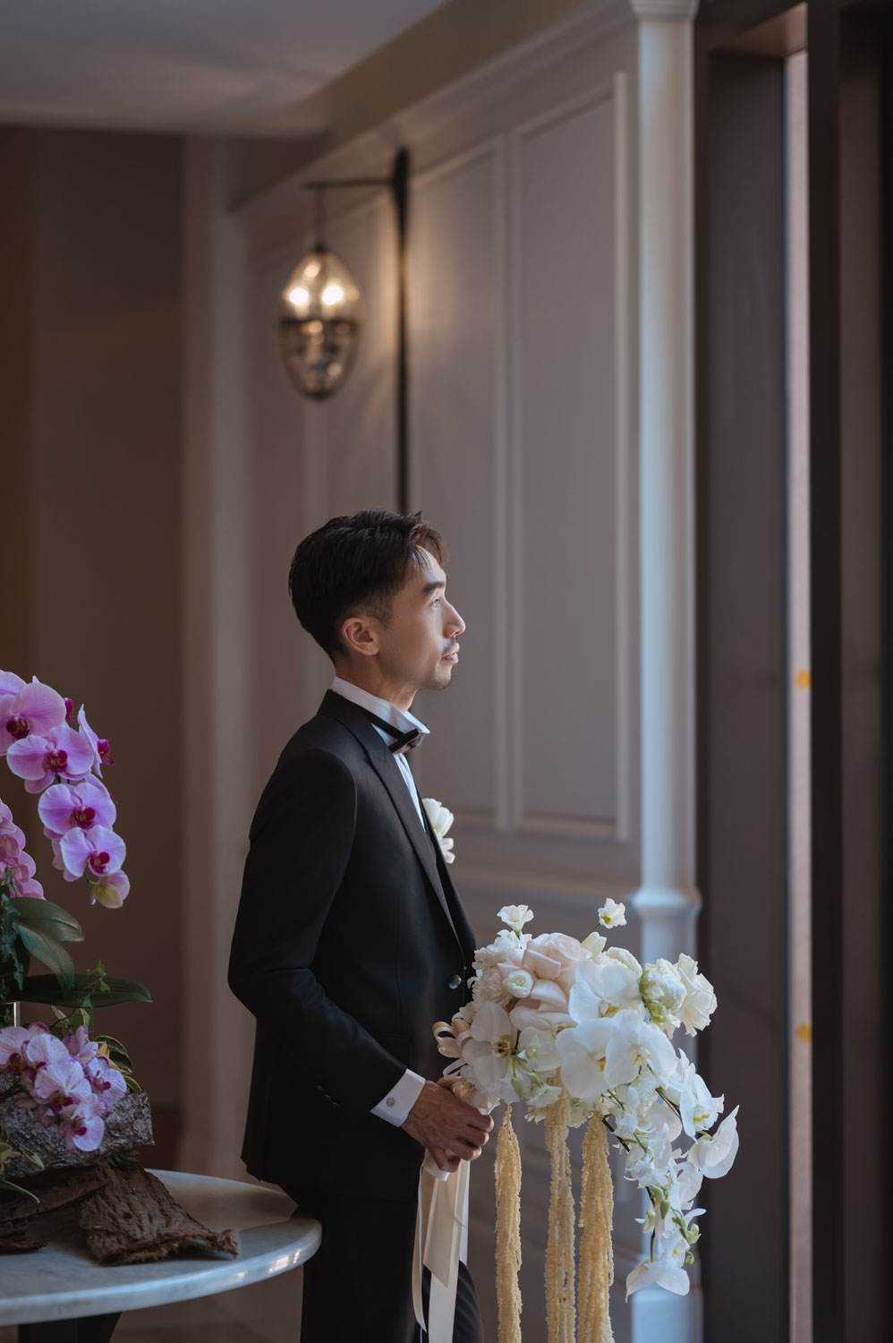 新郎的房間裡,兄弟們的笑聲伴隨著襯衫扣子與領帶的整理,那是一種獨有的沉穩與期待。