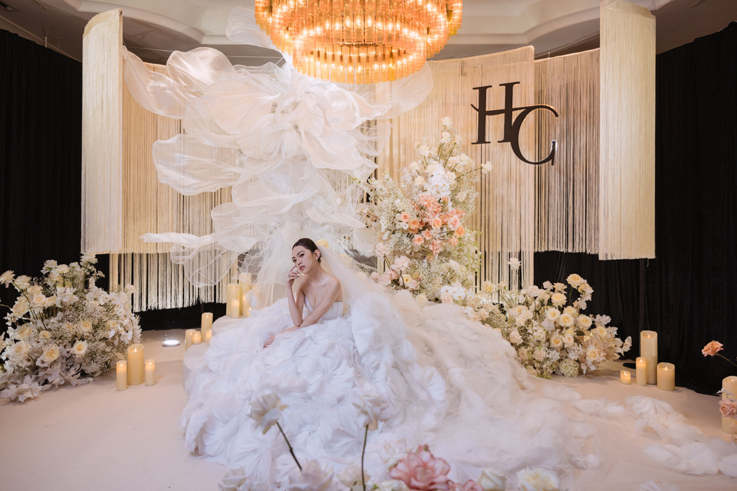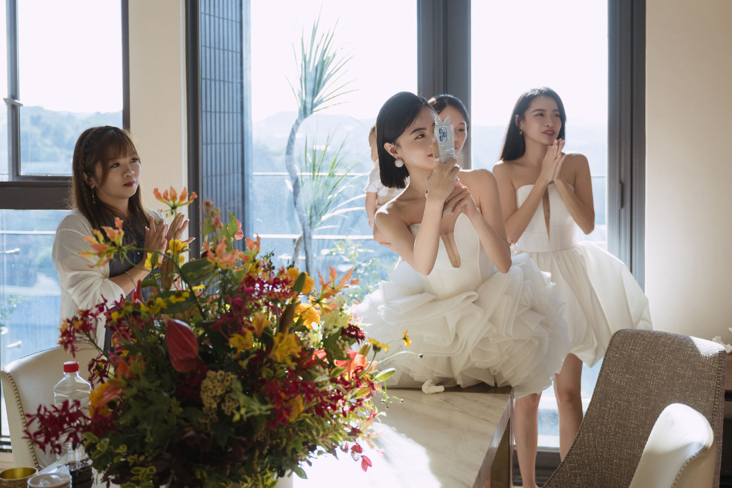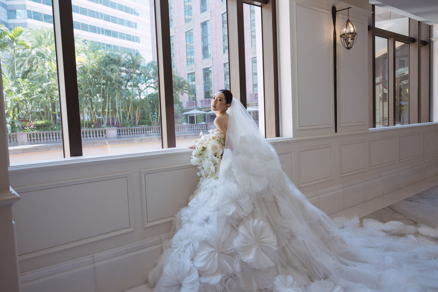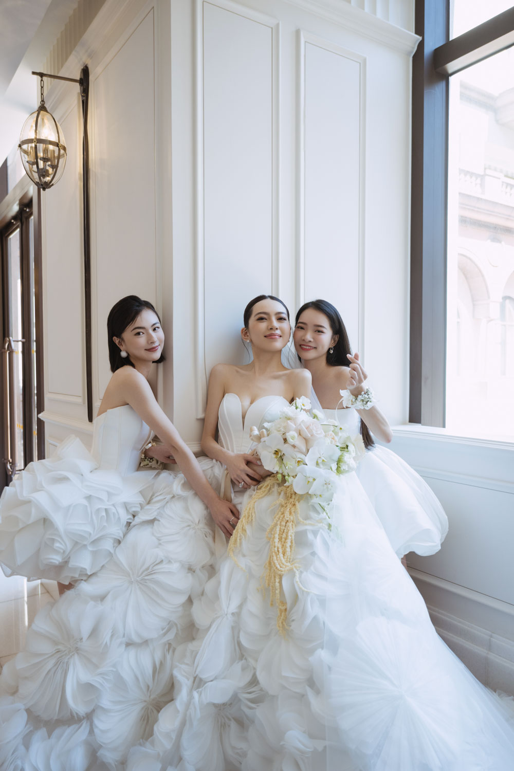 新娘的房間裡,晨光灑落在禮服的羽毛間,她安靜地梳理情緒,任光影輕輕描繪出屬於她的優雅。