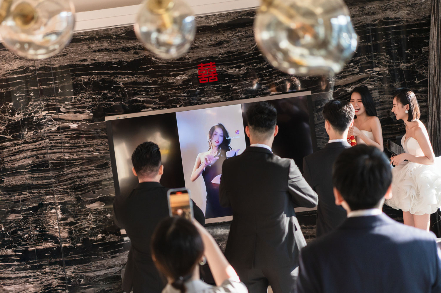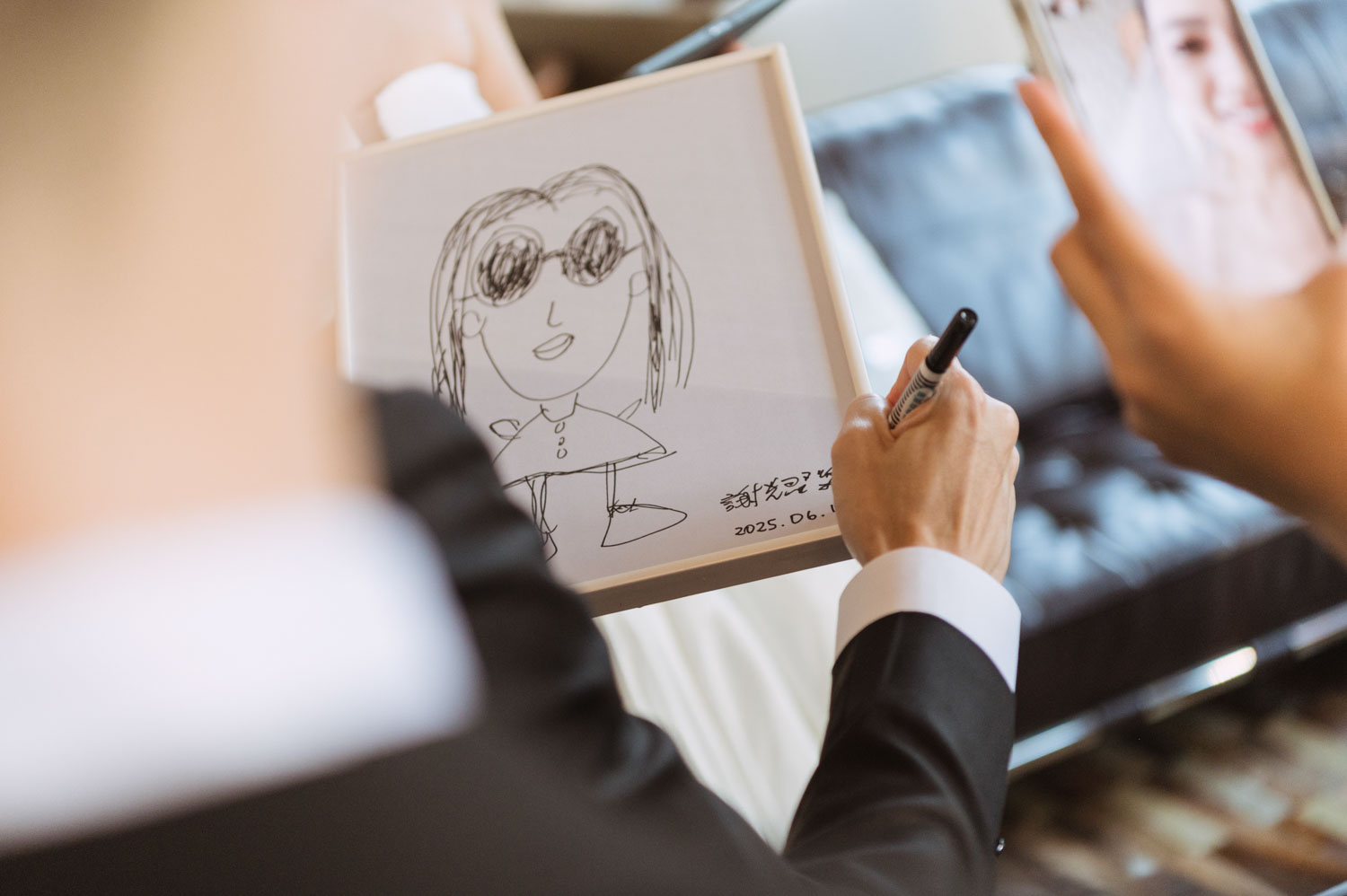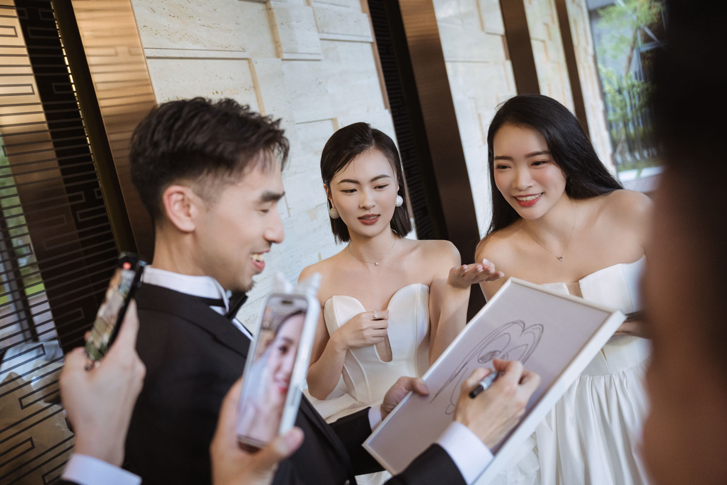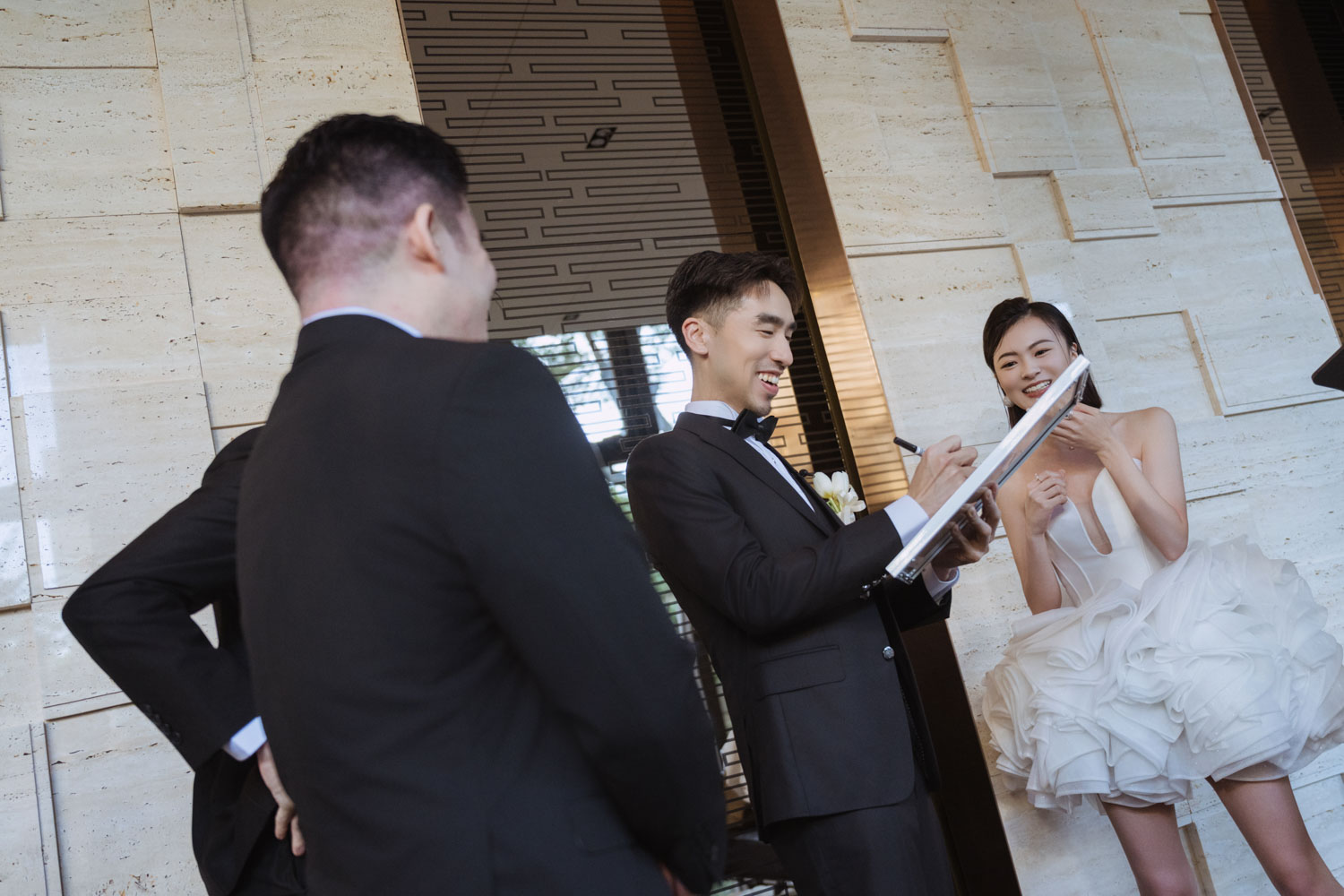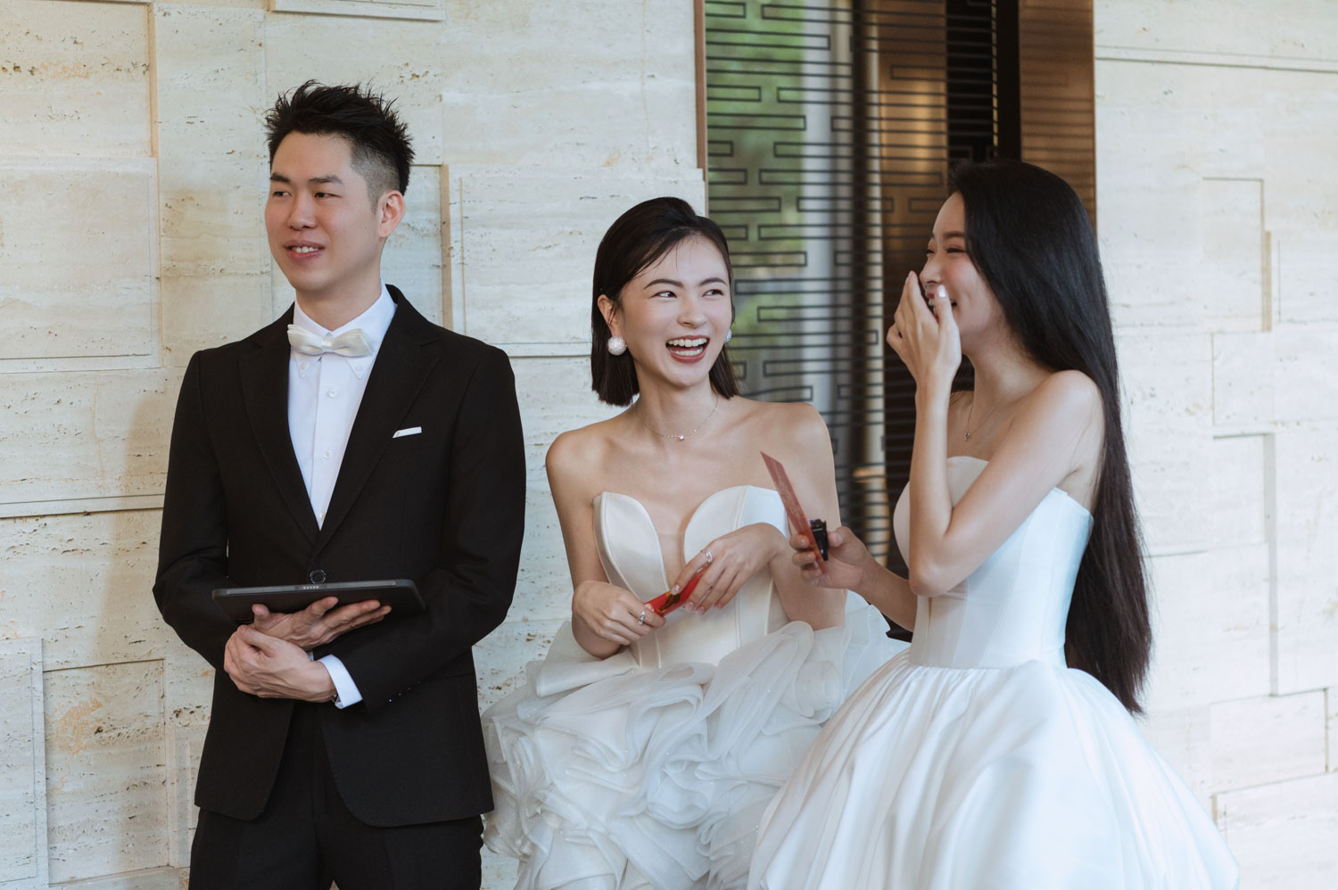 新郎一筆一畫、伴娘笑聲不斷,