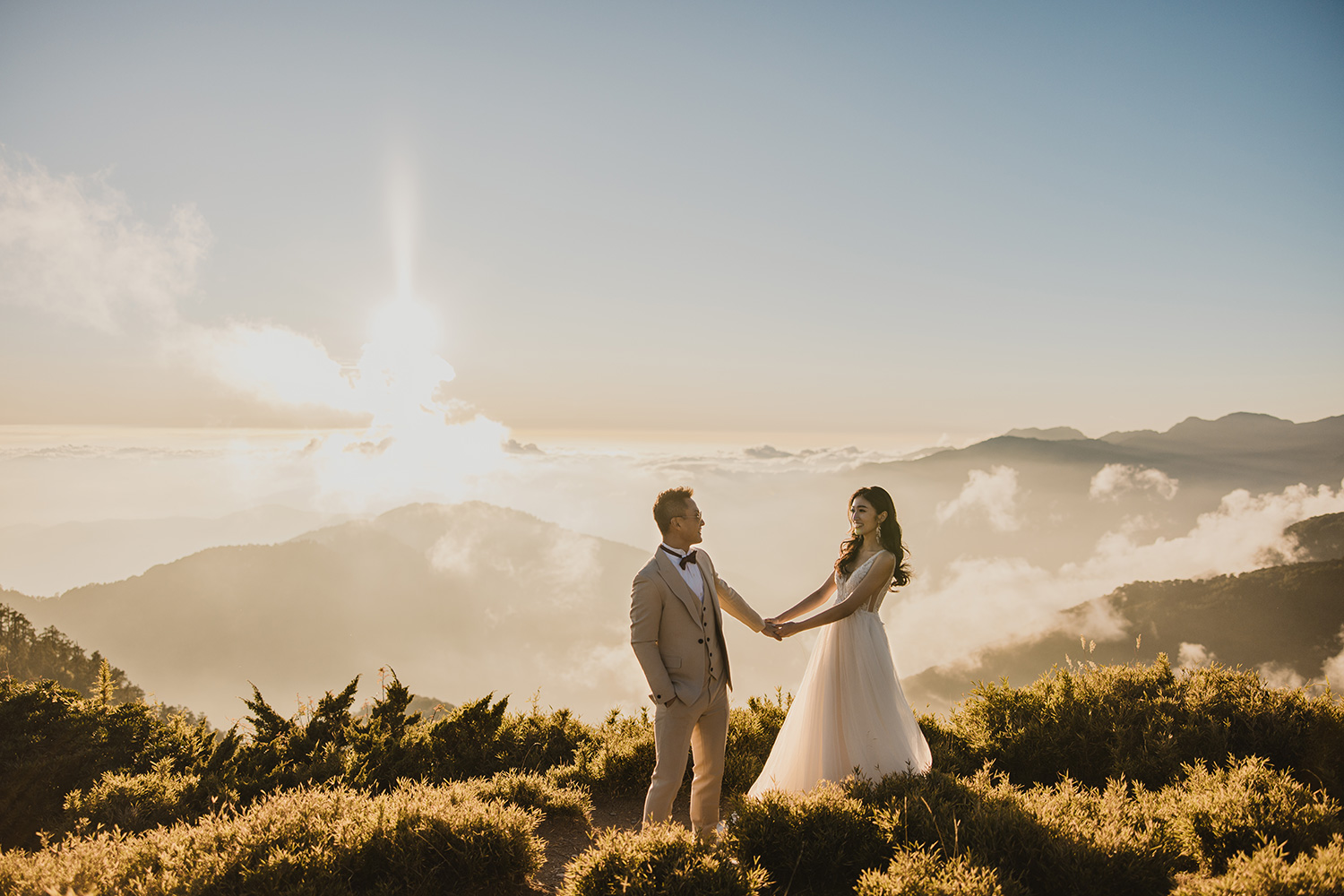 在合歡山拍婚紗時,日出與夕陽各有特色,