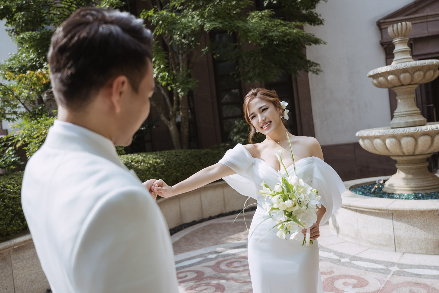 - 儀式感建立: 引導新郎背對新娘,讓新娘在指定位置輕拍新郎肩膀或輕喚名字,讓新郎在期待的最高點轉身。